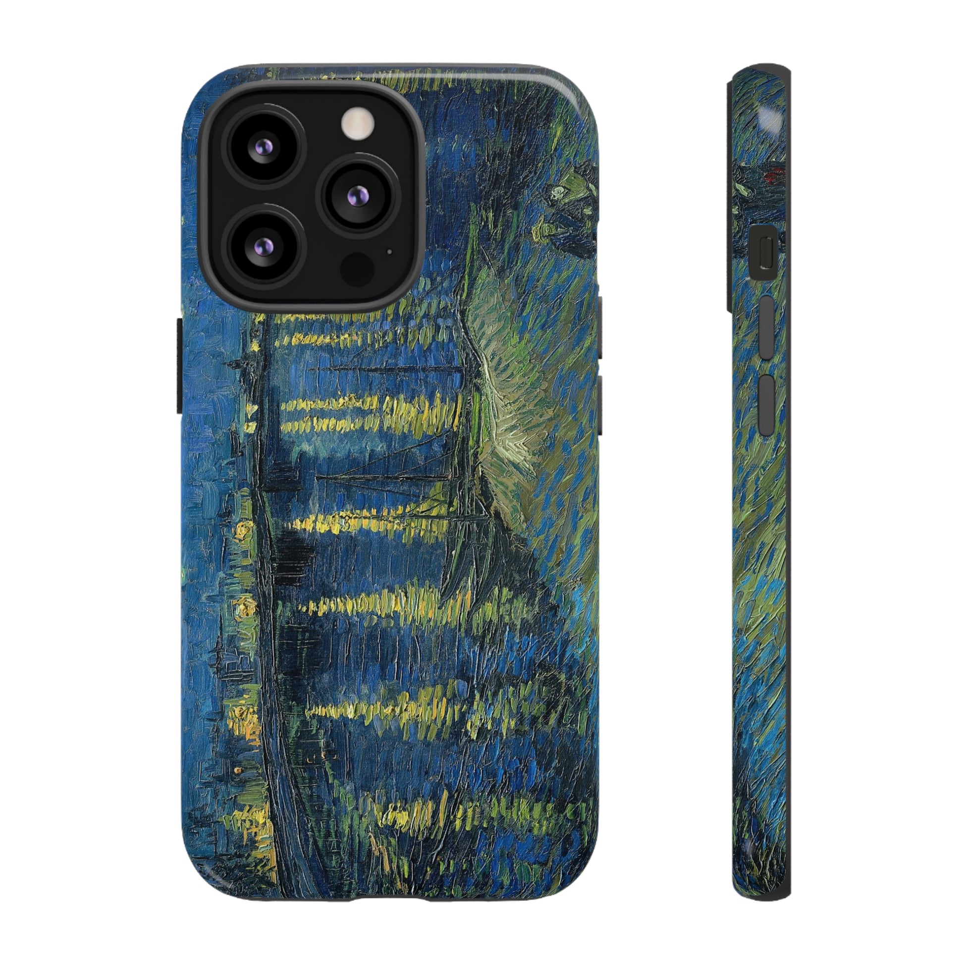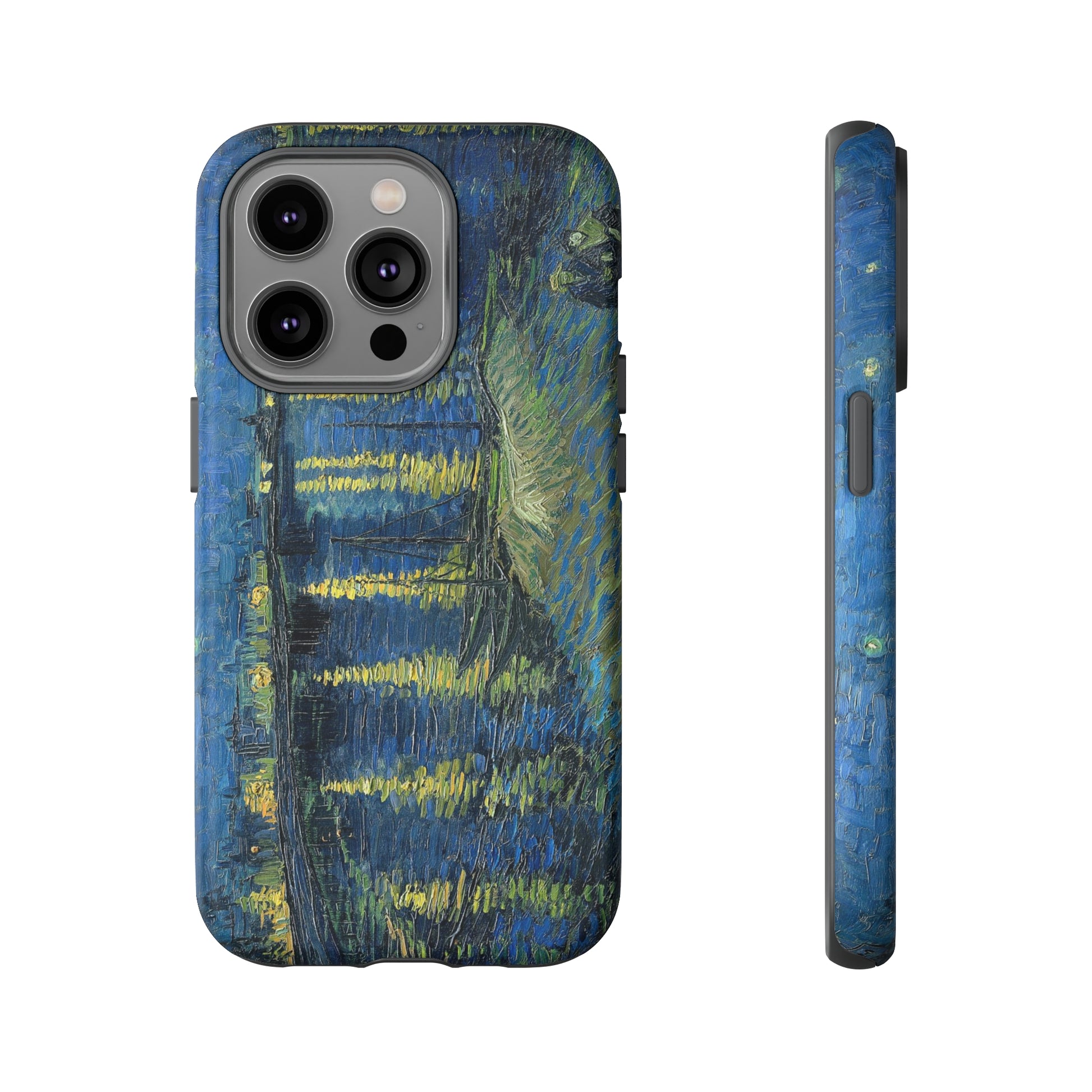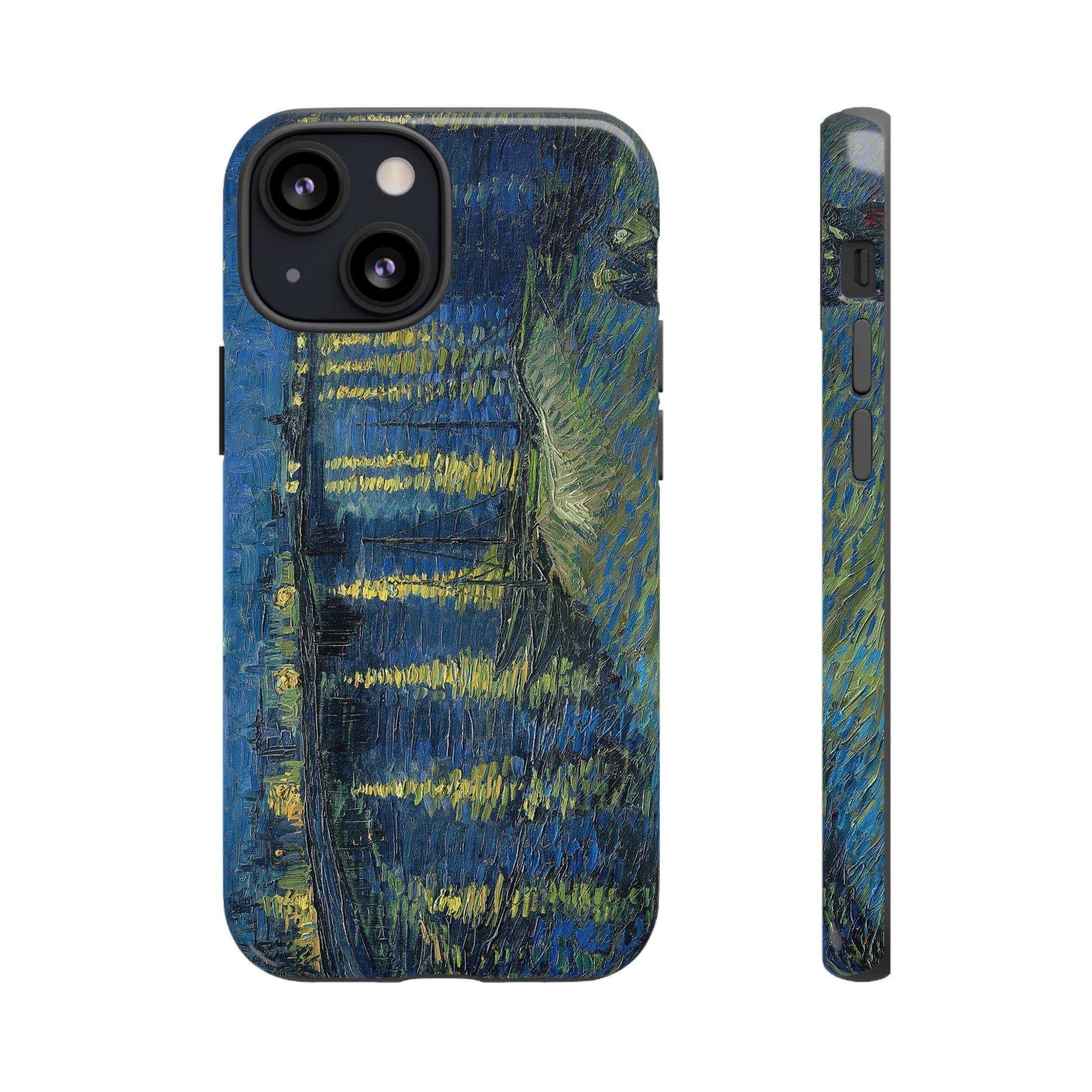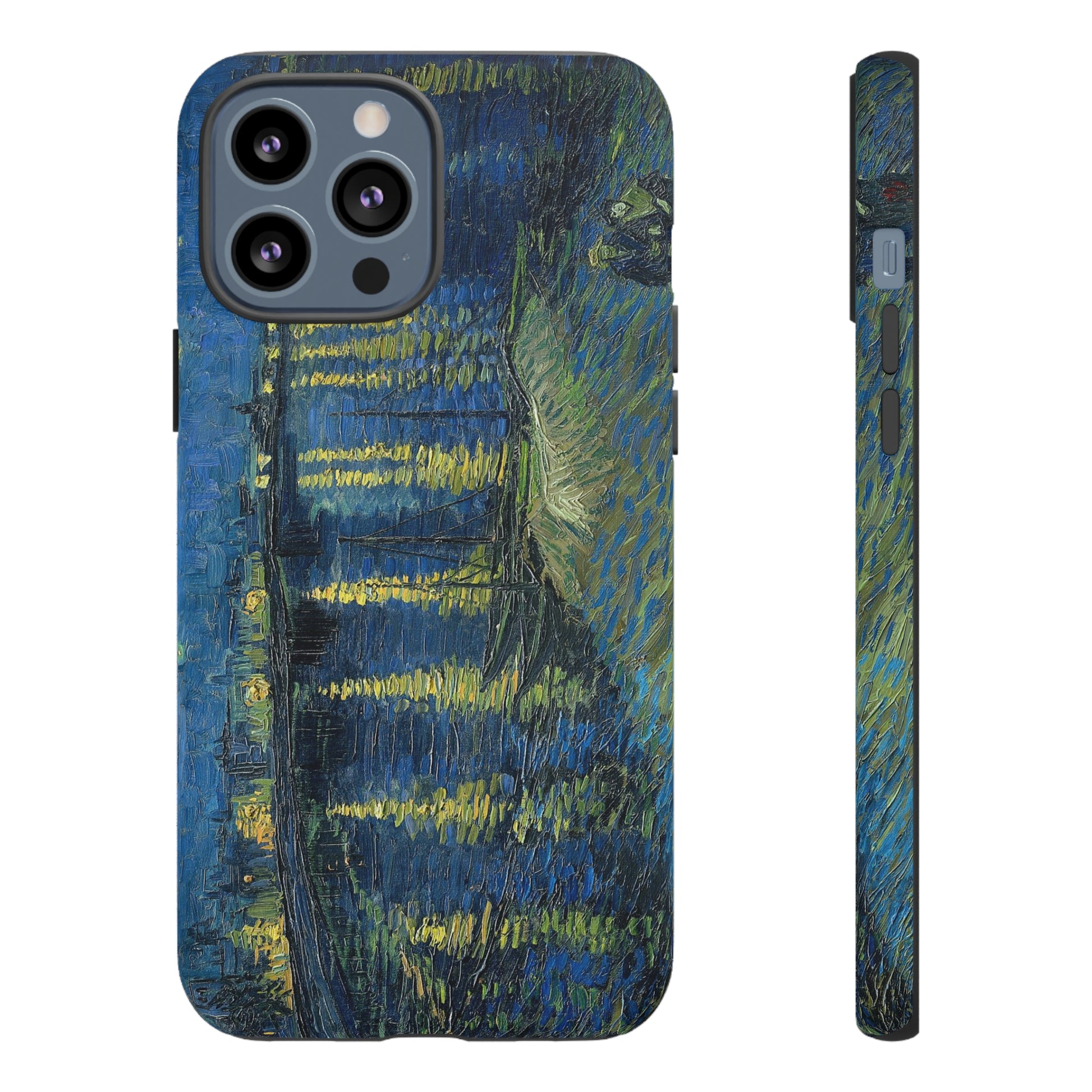 Add some art to your life with this protective cell phone case that features “Starry Night Over the Rhone” by Vincent Van Gogh beautifully recreated to combine a timeless masterpiece and modern functionality. Showcase this iconic art piece every time you pull out your phone. All our cases seamlessly blend artistry with practicality, allowing you to express sophistication and culture while safeguarding your device.