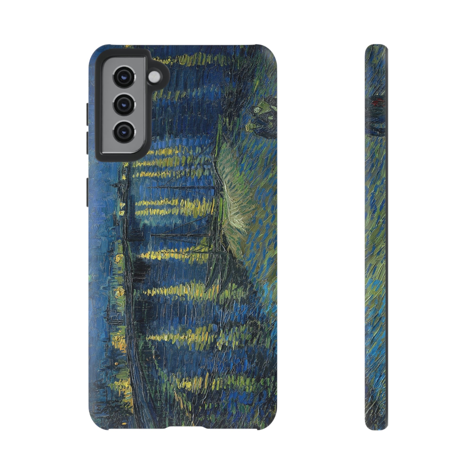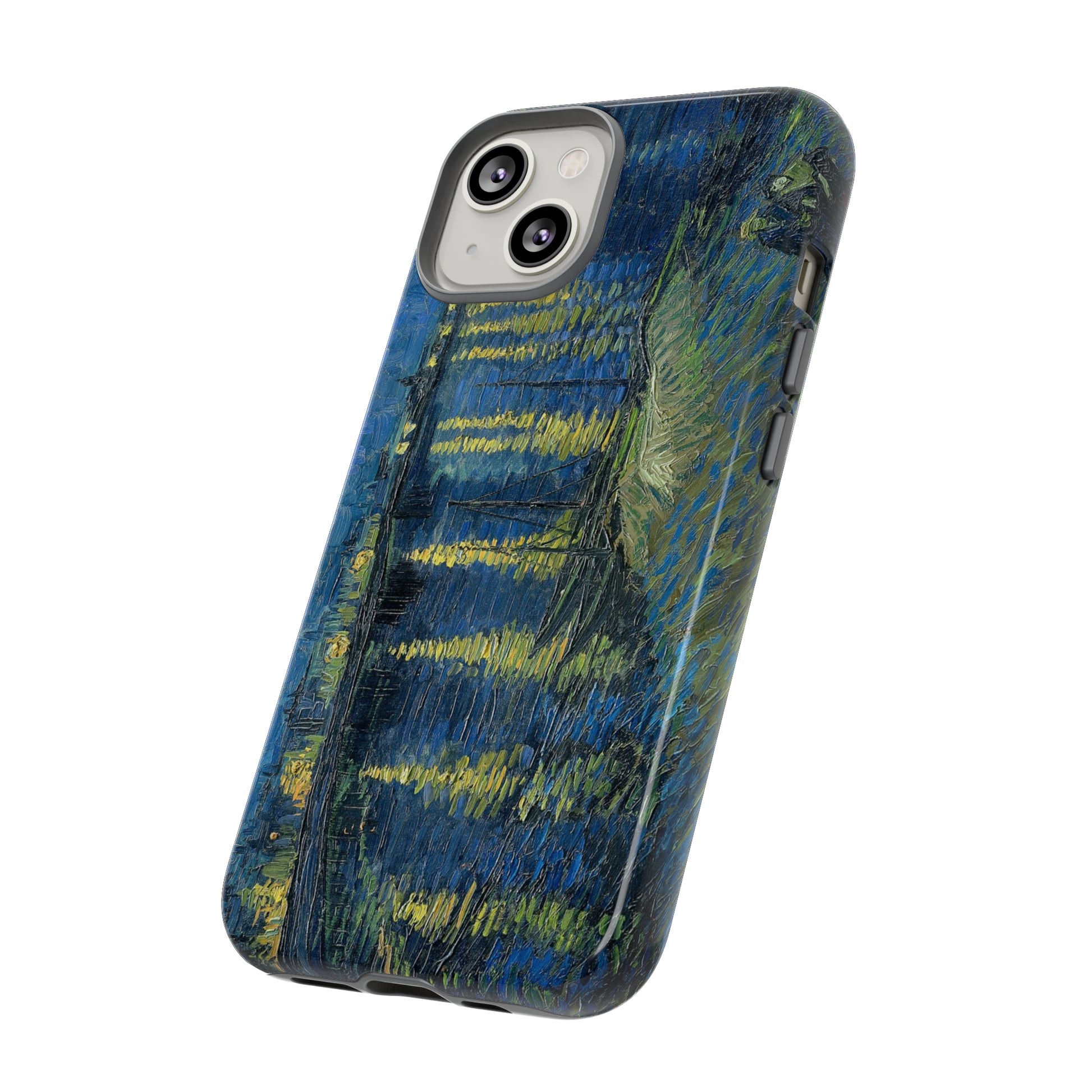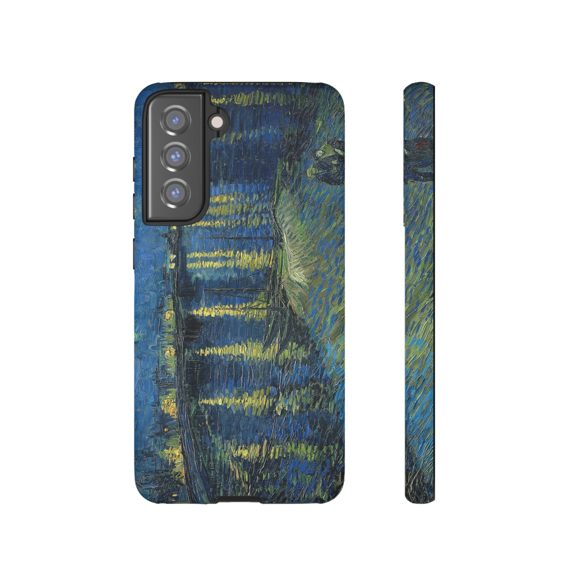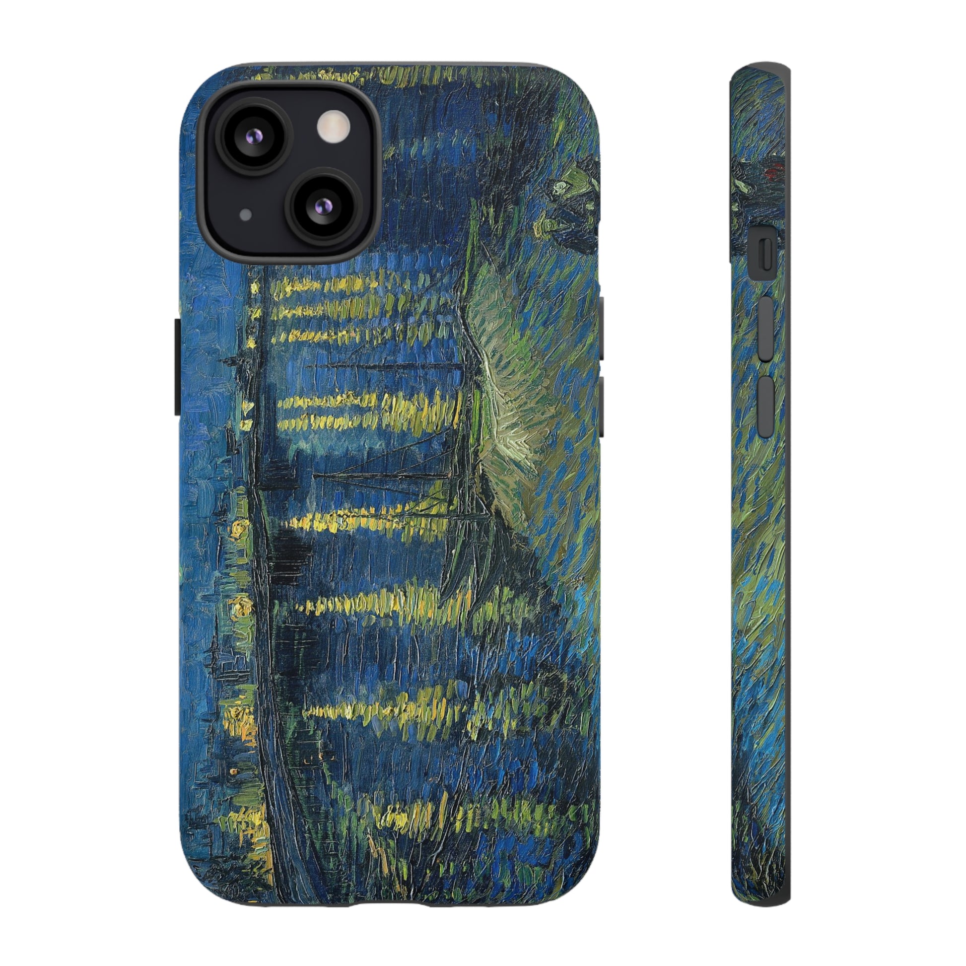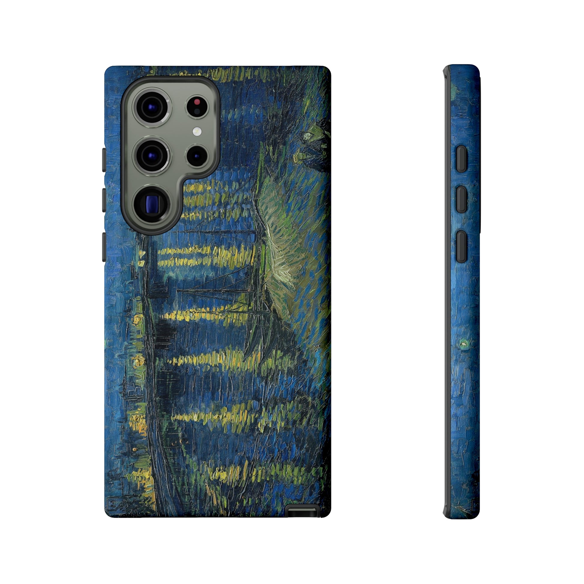 Add some art to your life with this protective cell phone case that features “Starry Night Over the Rhone” by Vincent Van Gogh beautifully recreated to combine a timeless masterpiece and modern functionality. Showcase this iconic art piece every time you pull out your phone. All our cases seamlessly blend artistry with practicality, allowing you to express sophistication and culture while safeguarding your device.