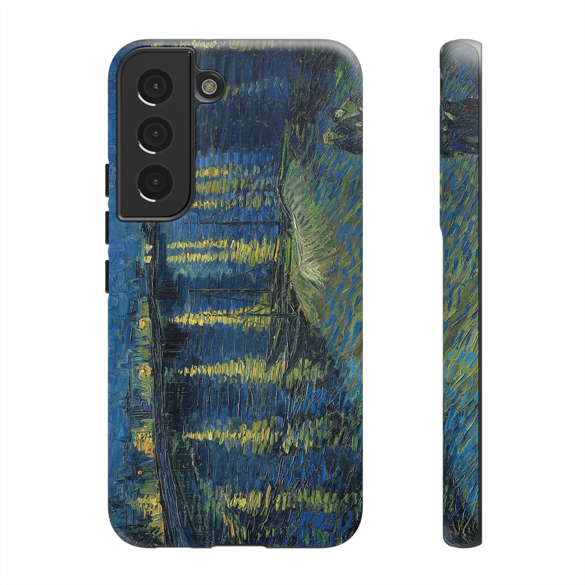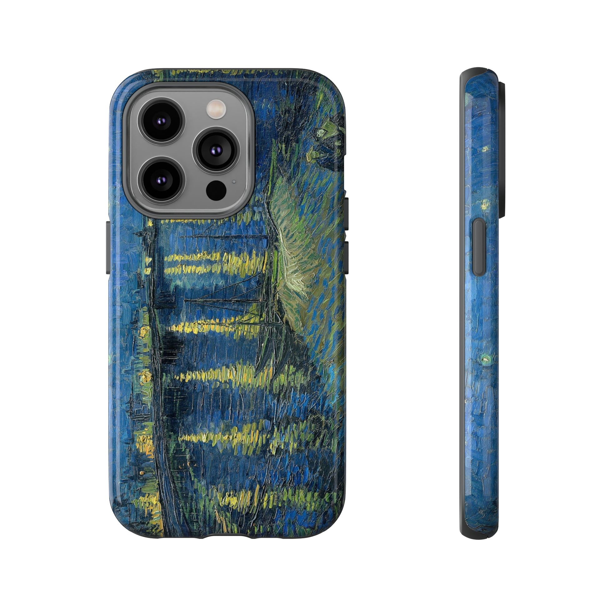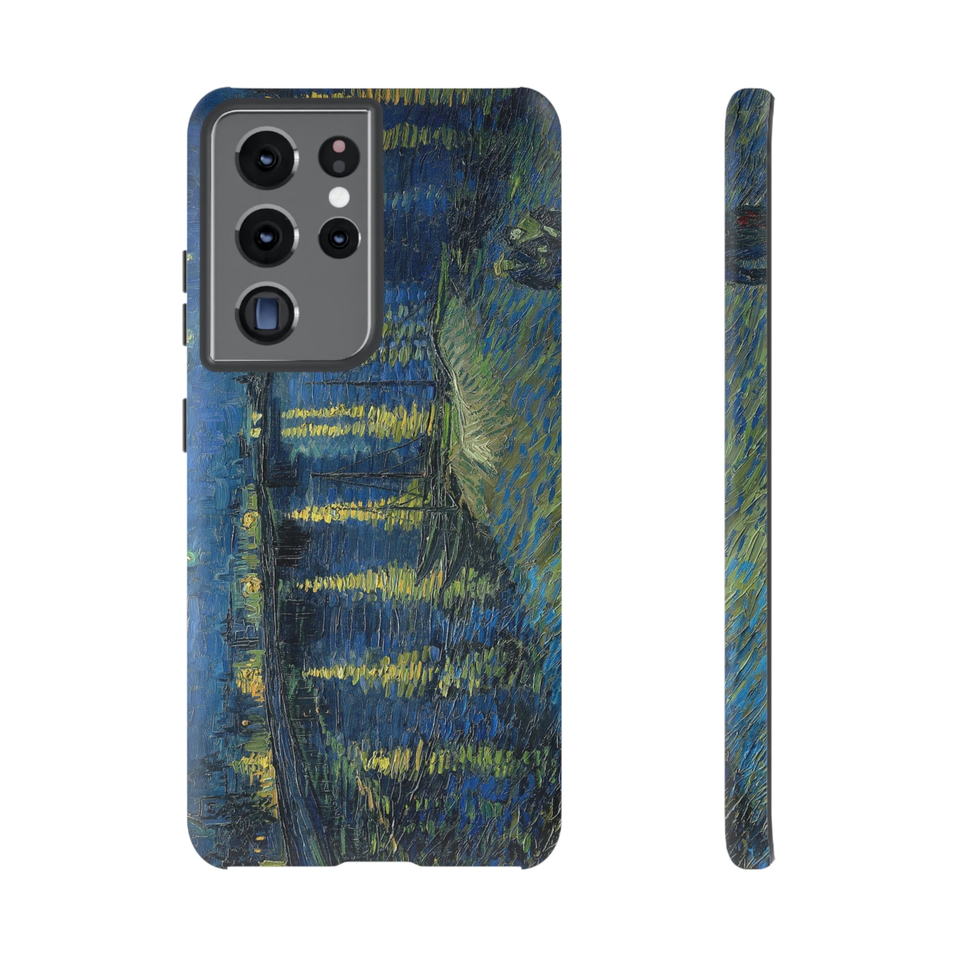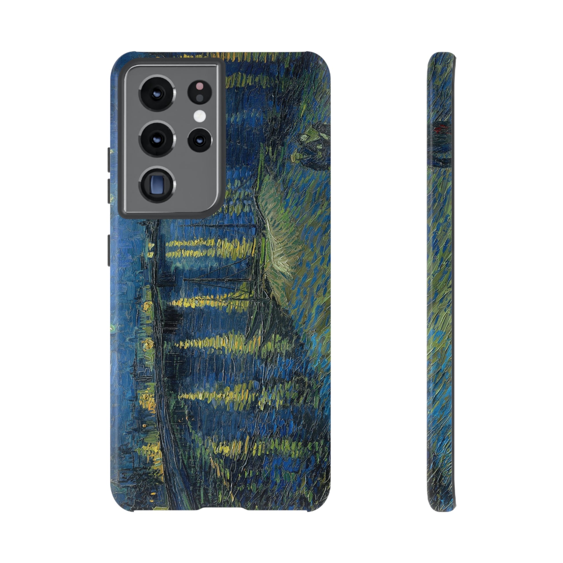Add some art to your life with this protective cell phone case that features “Starry Night Over the Rhone” by Vincent Van Gogh beautifully recreated to combine a timeless masterpiece and modern functionality. Showcase this iconic art piece every time you pull out your phone. All our cases seamlessly blend artistry with practicality, allowing you to express sophistication and culture while safeguarding your device.