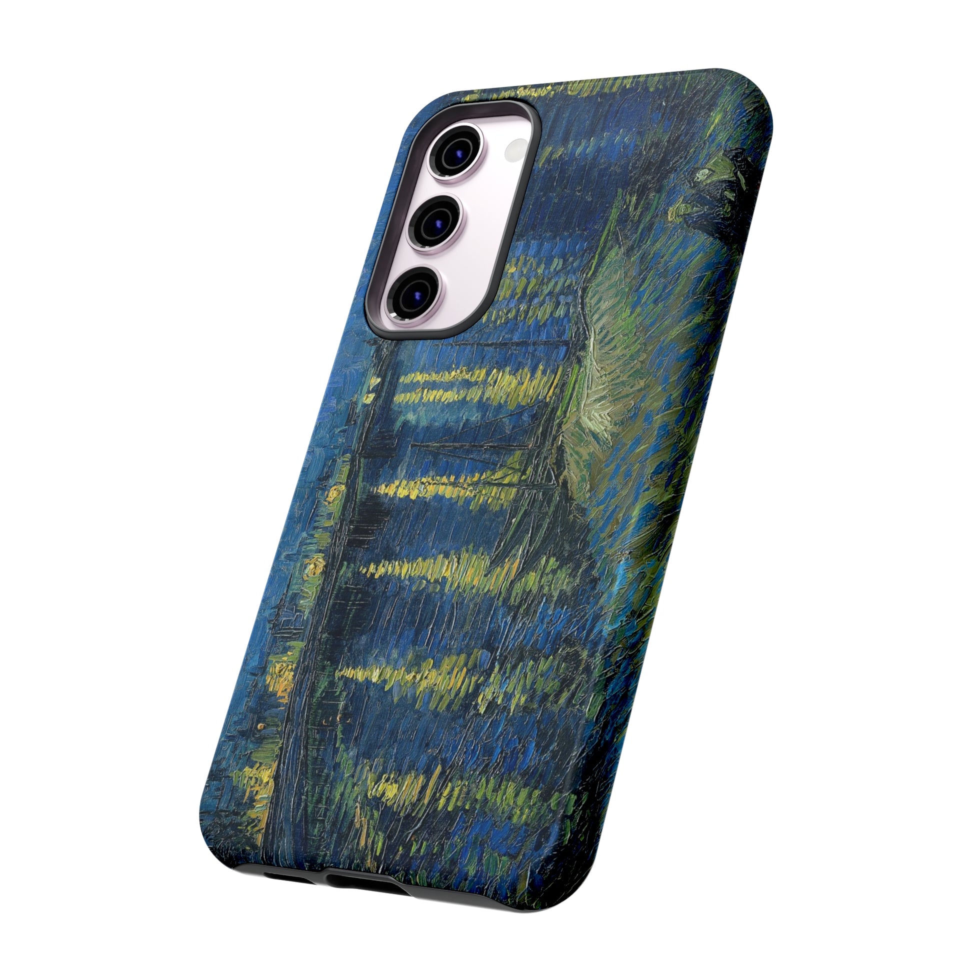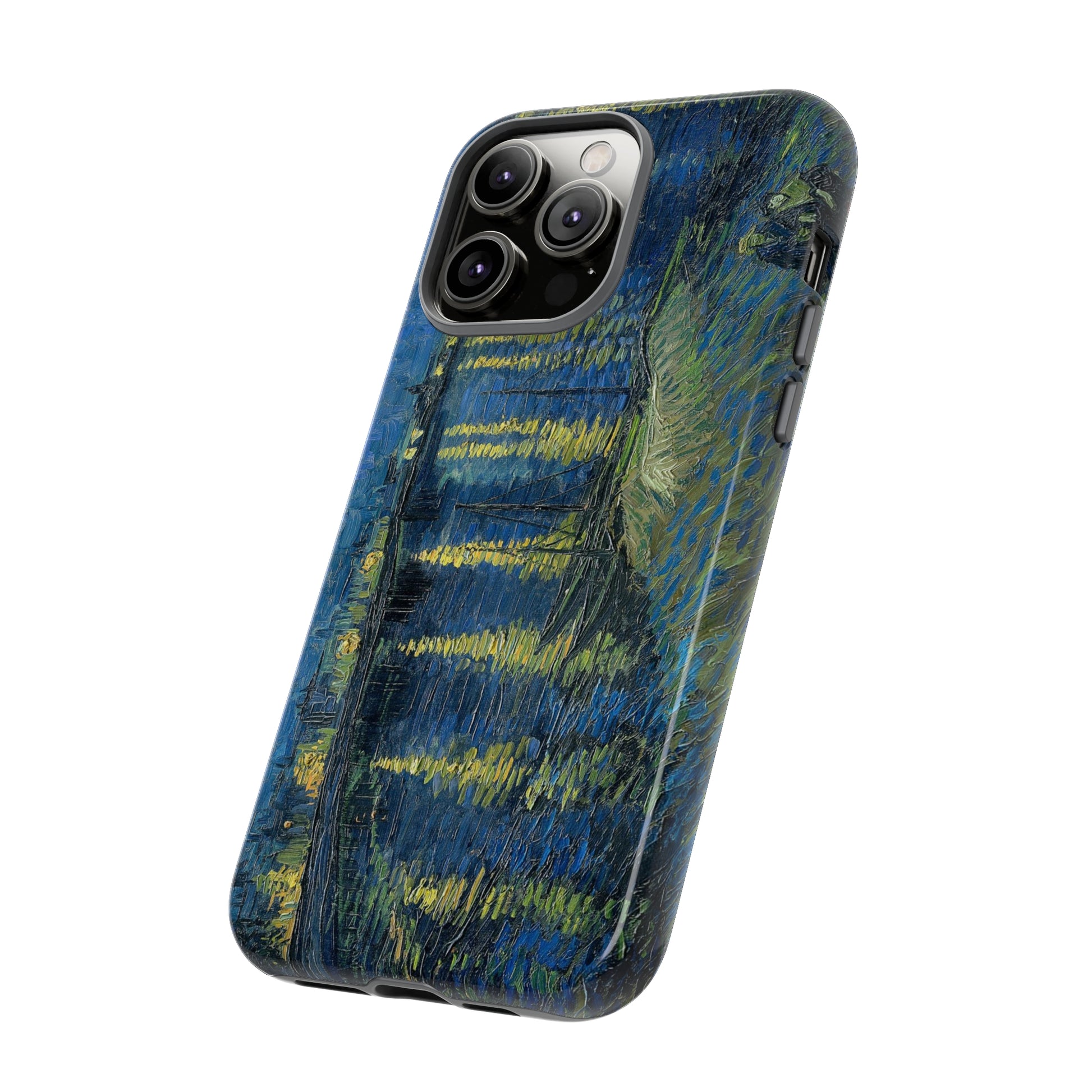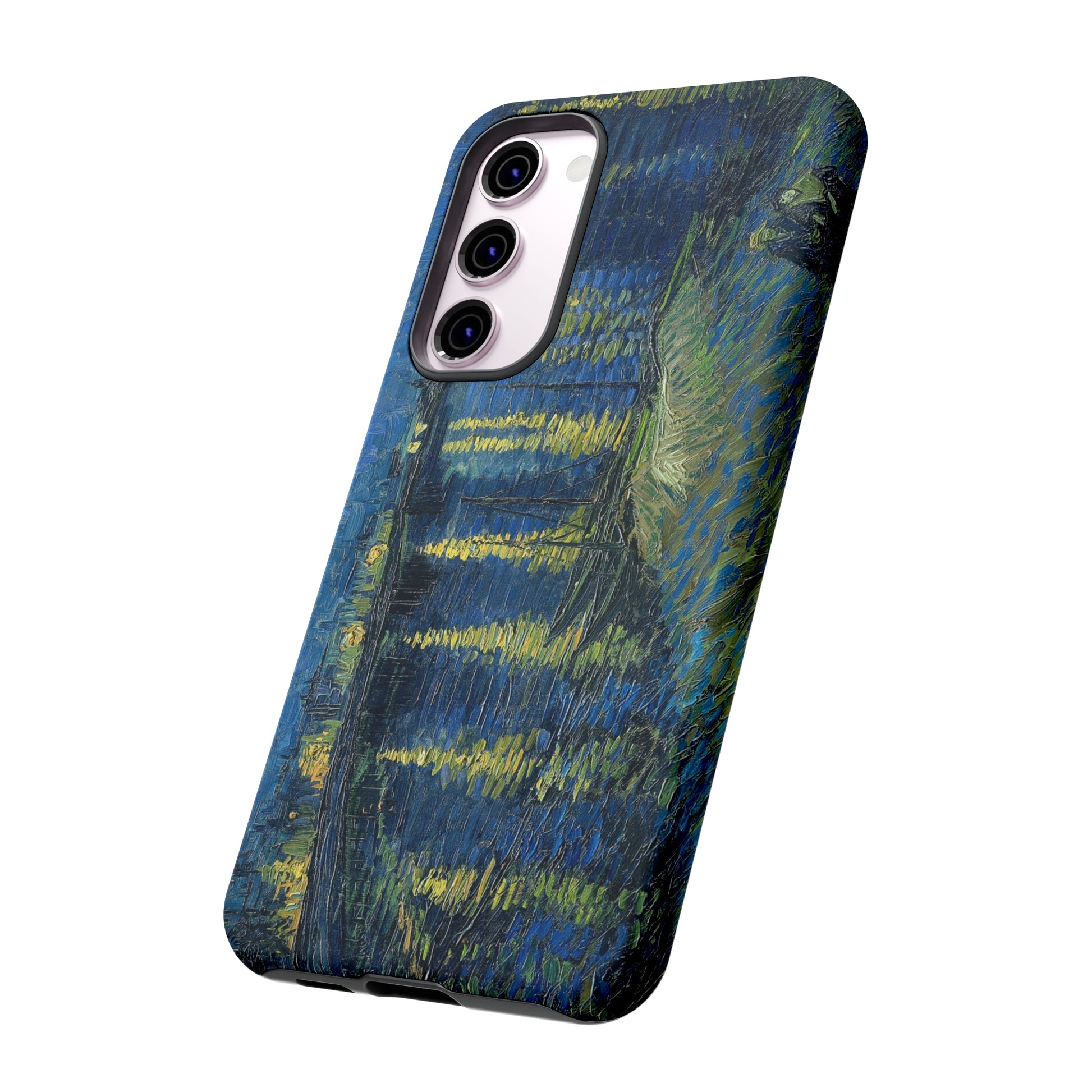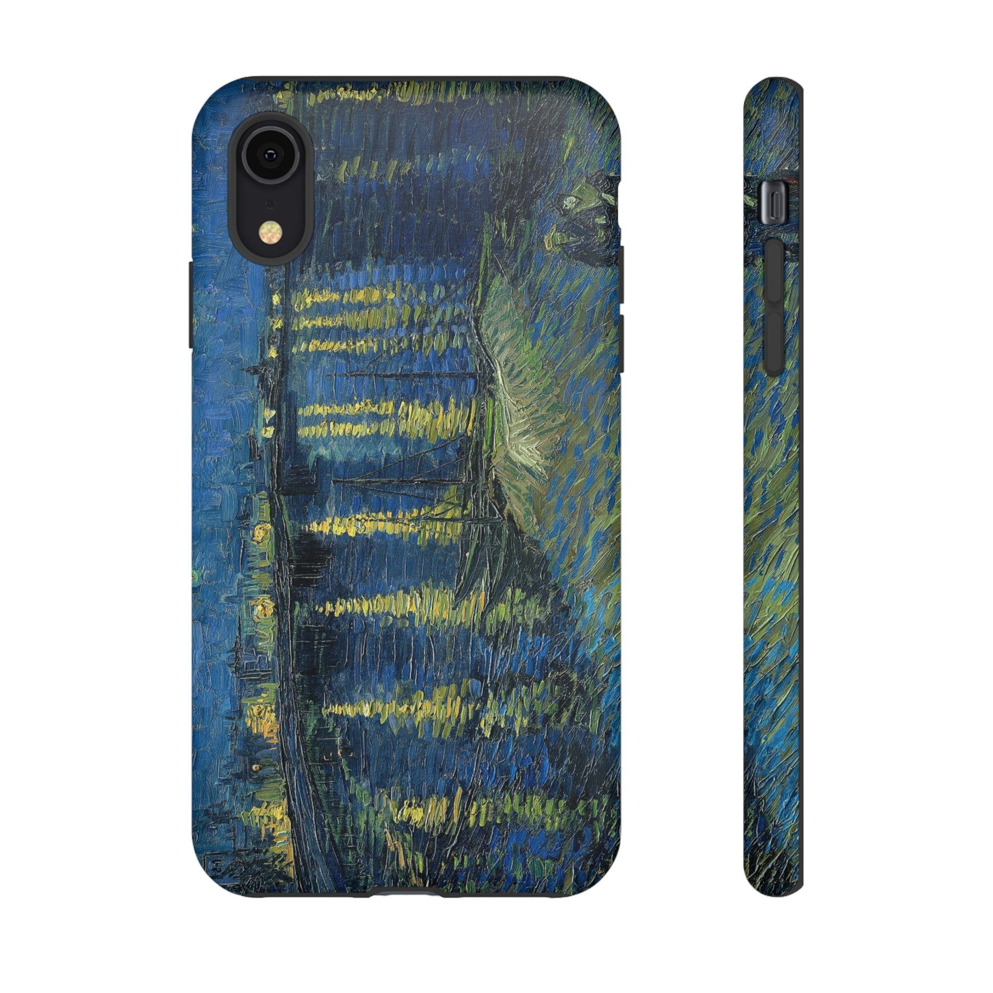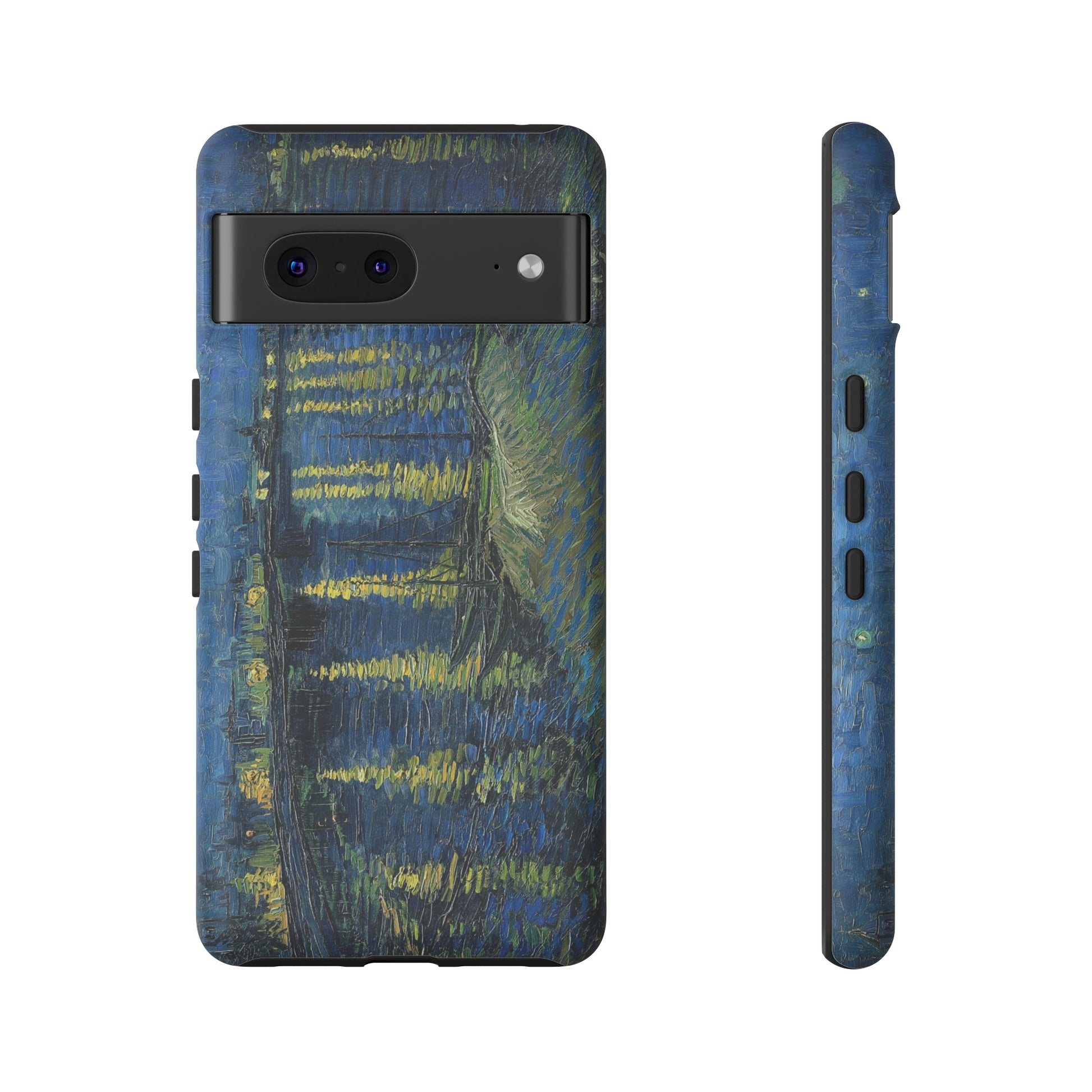 Add some art to your life with this protective cell phone case that features “Starry Night Over the Rhone” by Vincent Van Gogh beautifully recreated to combine a timeless masterpiece and modern functionality. Showcase this iconic art piece every time you pull out your phone. All our cases seamlessly blend artistry with practicality, allowing you to express sophistication and culture while safeguarding your device.
