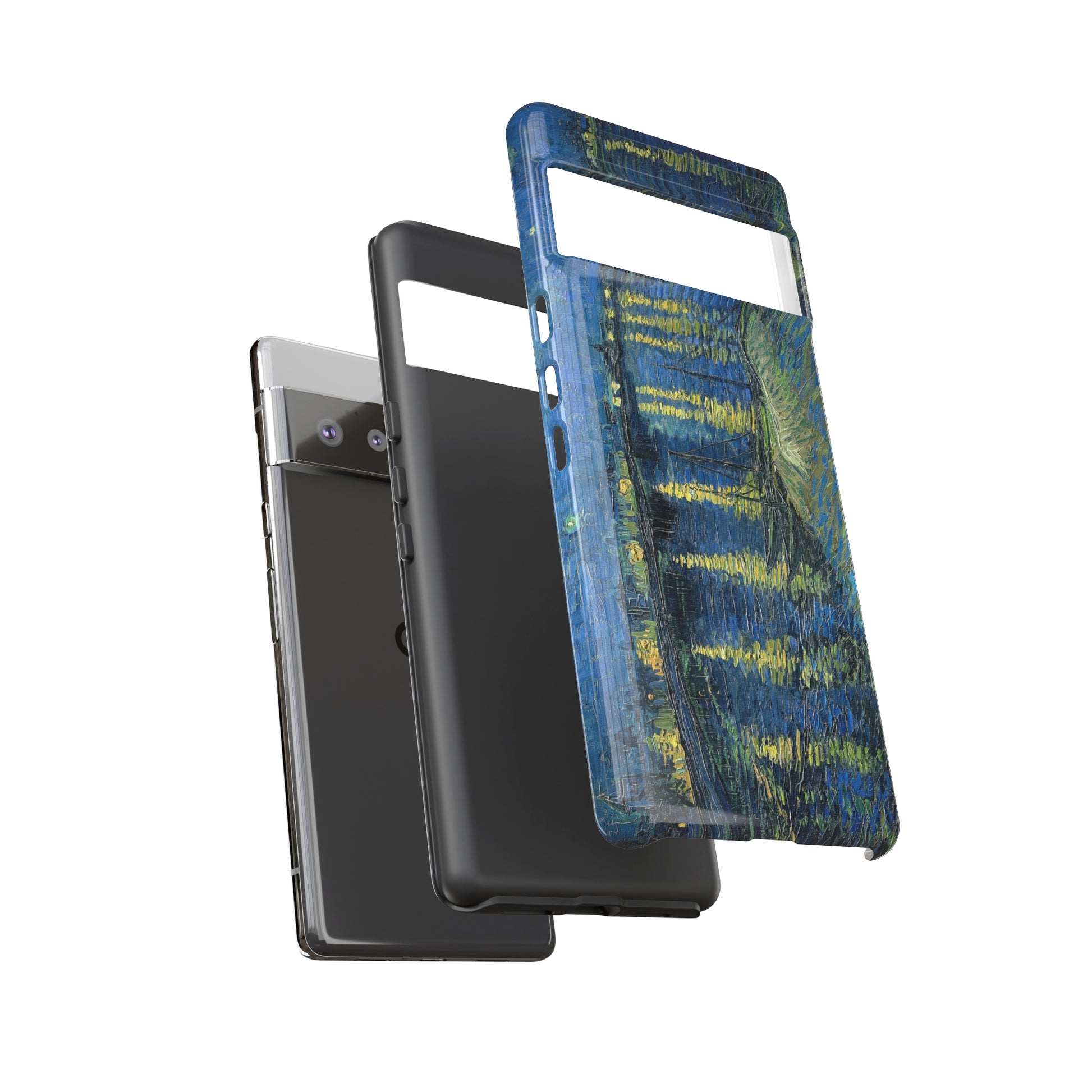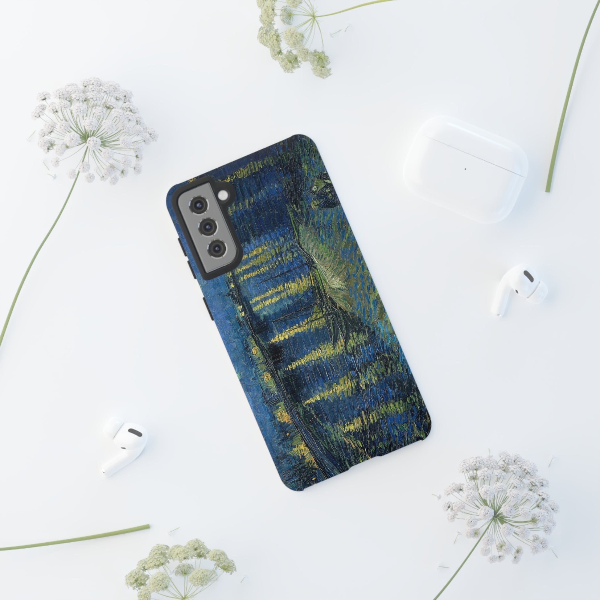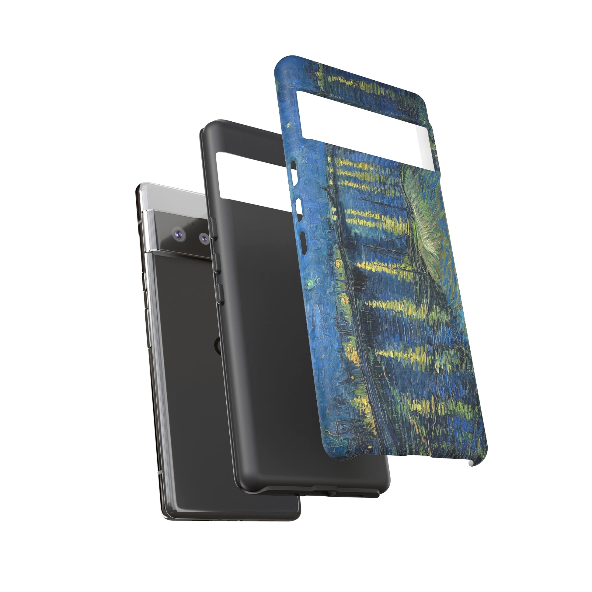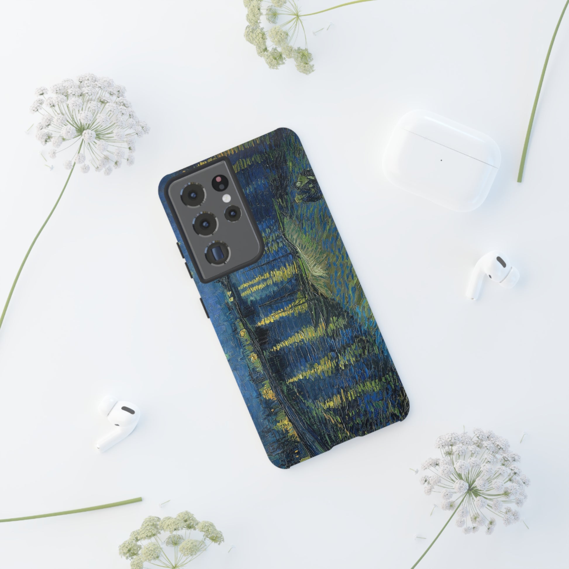 Add some art to your life with this protective cell phone case that features “Starry Night Over the Rhone” by Vincent Van Gogh beautifully recreated to combine a timeless masterpiece and modern functionality. Showcase this iconic art piece every time you pull out your phone. All our cases seamlessly blend artistry with practicality, allowing you to express sophistication and culture while safeguarding your device.